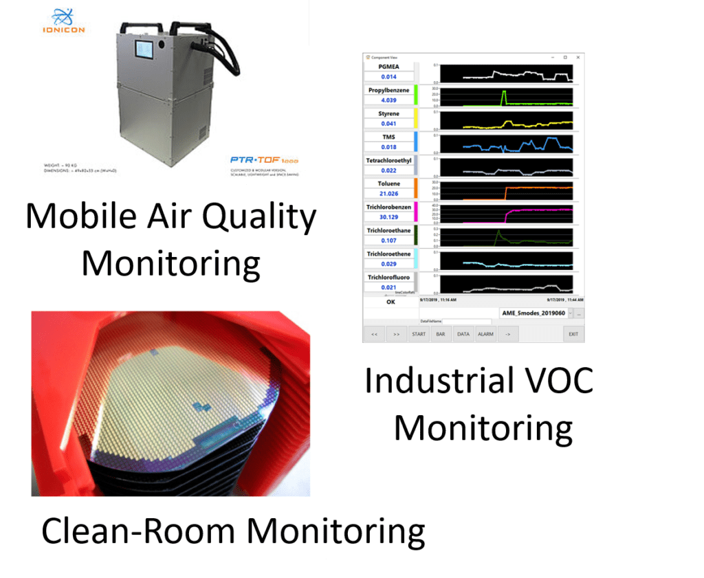 IONICON PTR-TOF MS are used for real-time air quality monitoring, environmental research, food and flavour science, security and safety, indoor air quality, breath analysis, biological research, air contamination in semiconductor manufacturing environment, detection of illicit substances and many more applications.