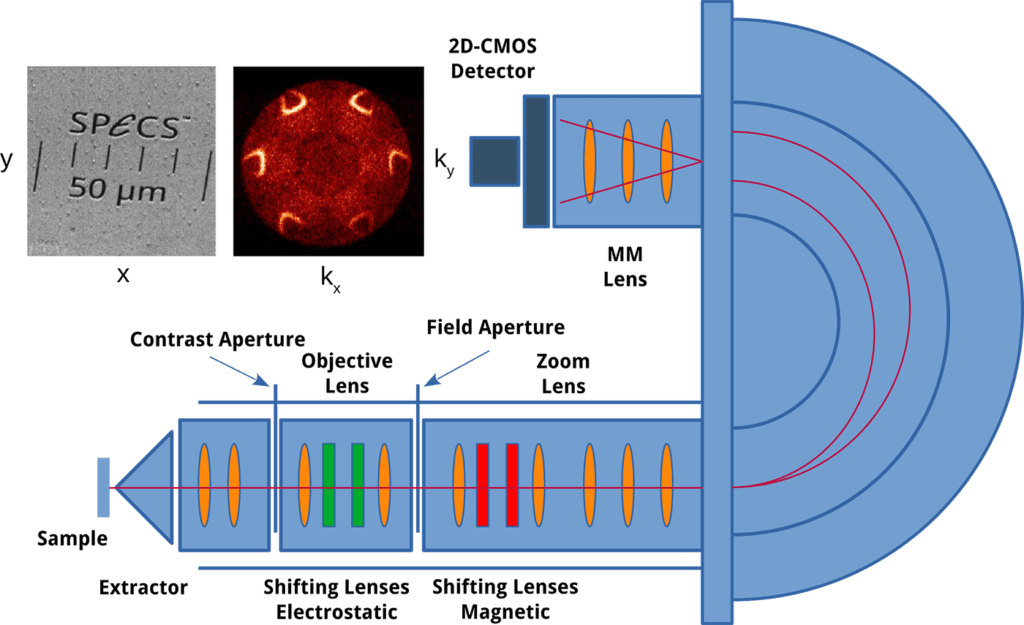 The basis of the instrumentation is a dedicated immersion lens being optimized for spectroscopic resolution at high lateral resolving power. An extraction field collects electrons with an emission angle of up to ±90°, thus collecting the complete photoemission signal for the sample. The immersion lens projects the sample information either in real space mode (PEEM) or in reciprocal space mode (ARPES and momentum microscopy).