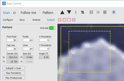 Advanced spectroscopy modules allow for experiments at a single point, along a line, a cloud of arbitrary points or a regularly spaced grid, including combined grid and scanning mode that can have different pixel densities. All pattern types can run scripted spectroscopy.